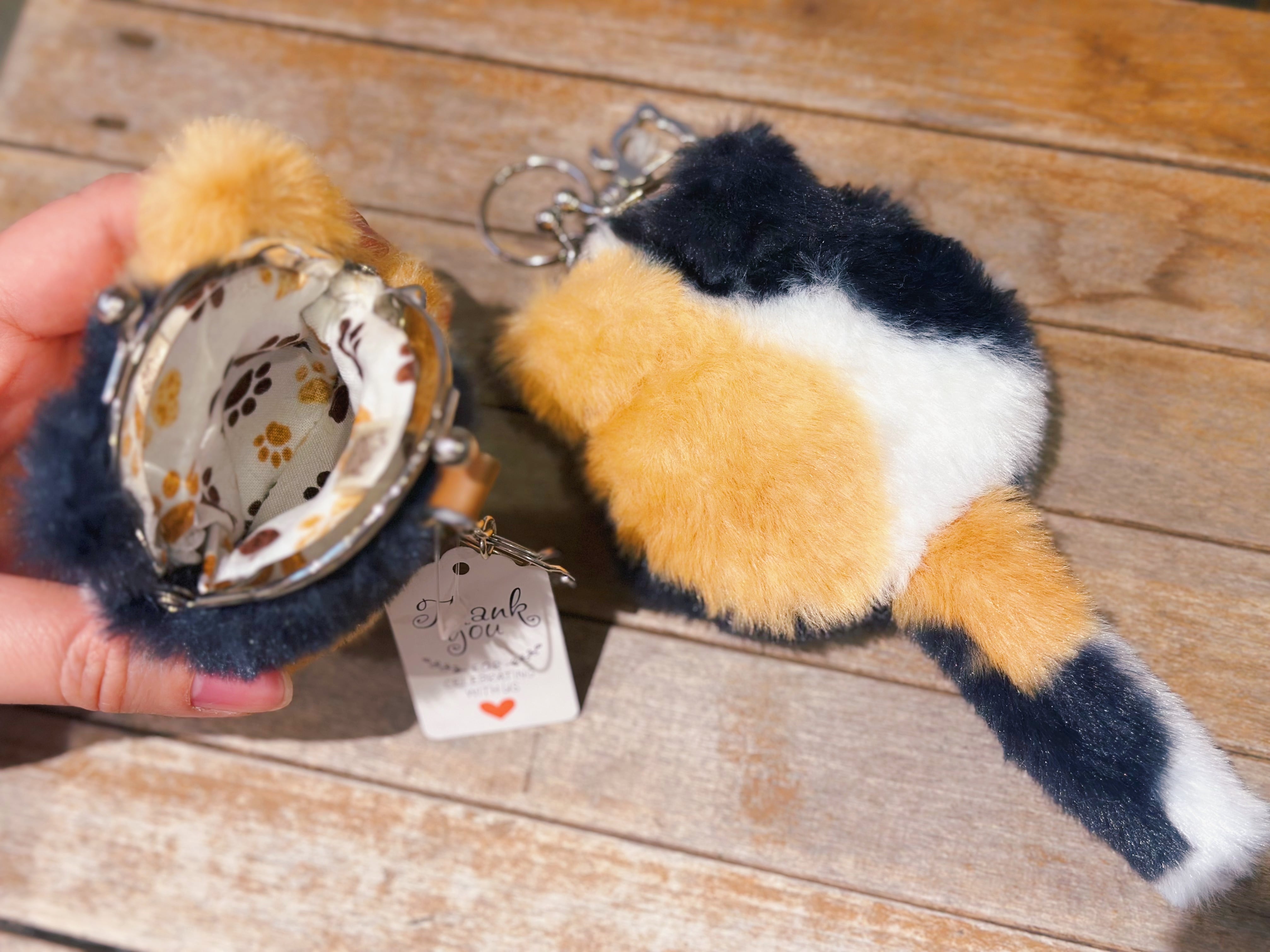 しっぽ付き!三毛猫のがま口キーホルダー