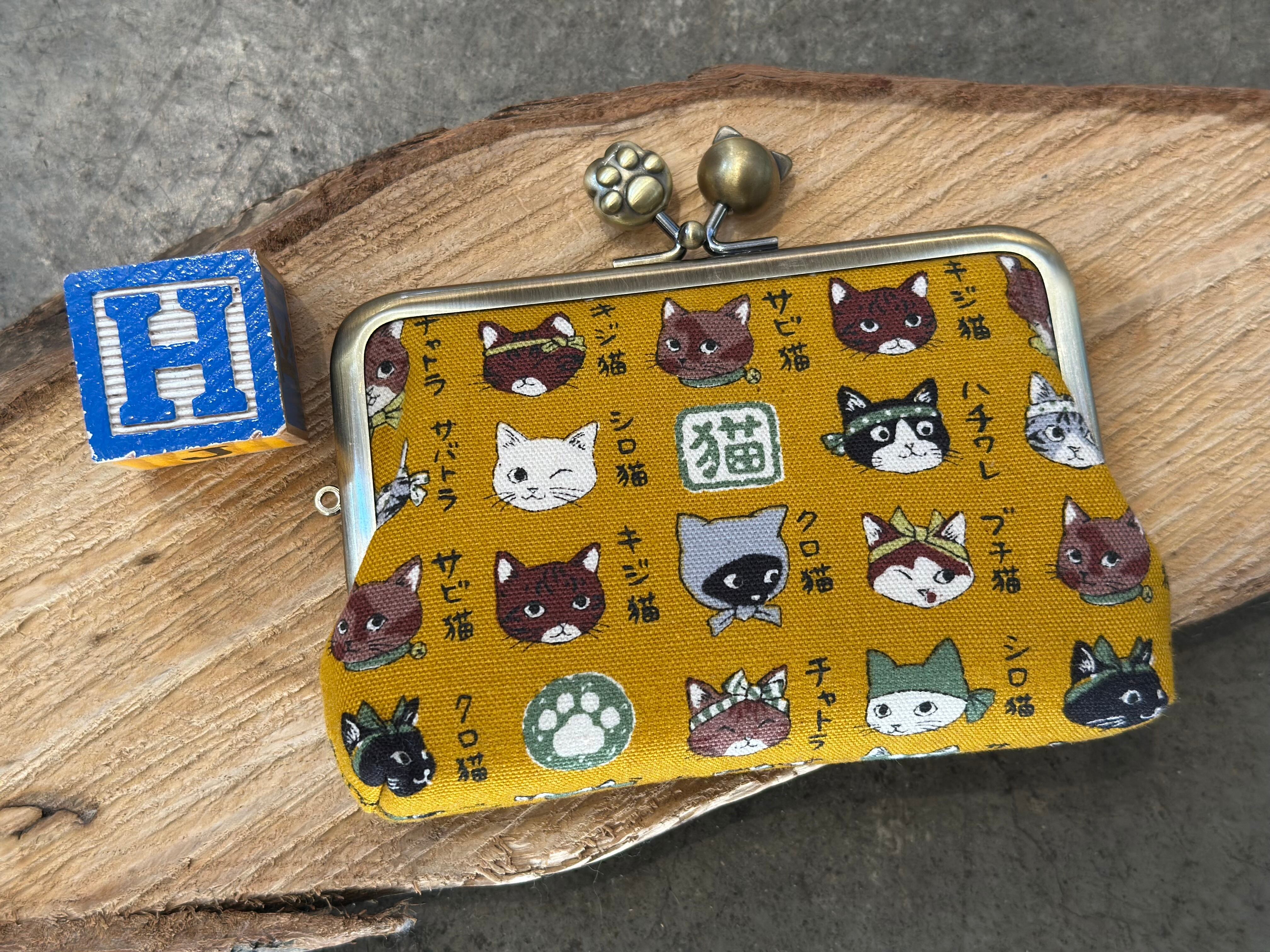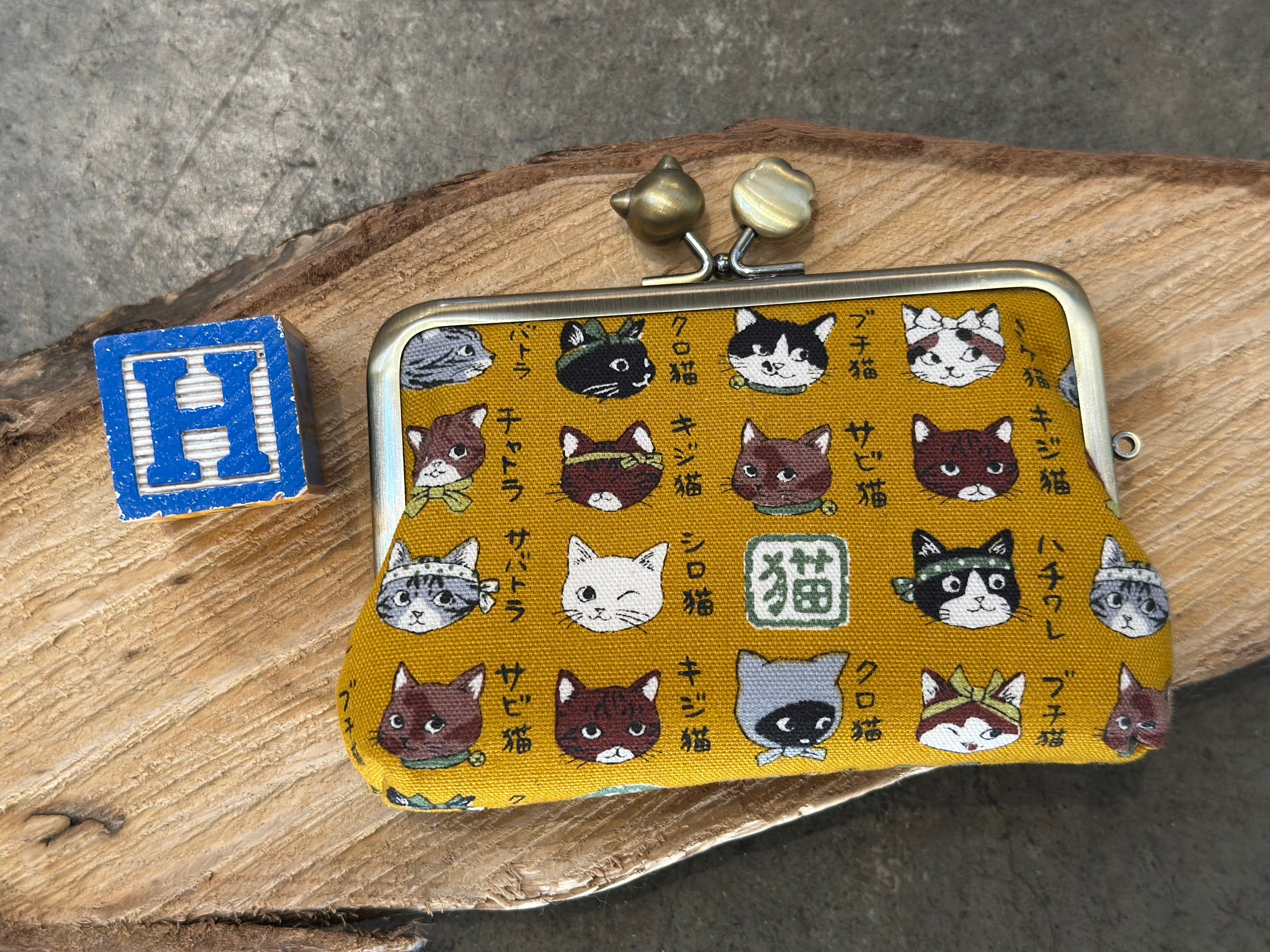猫の小銭収納がま口ポーチ 印鑑ケース イエロー