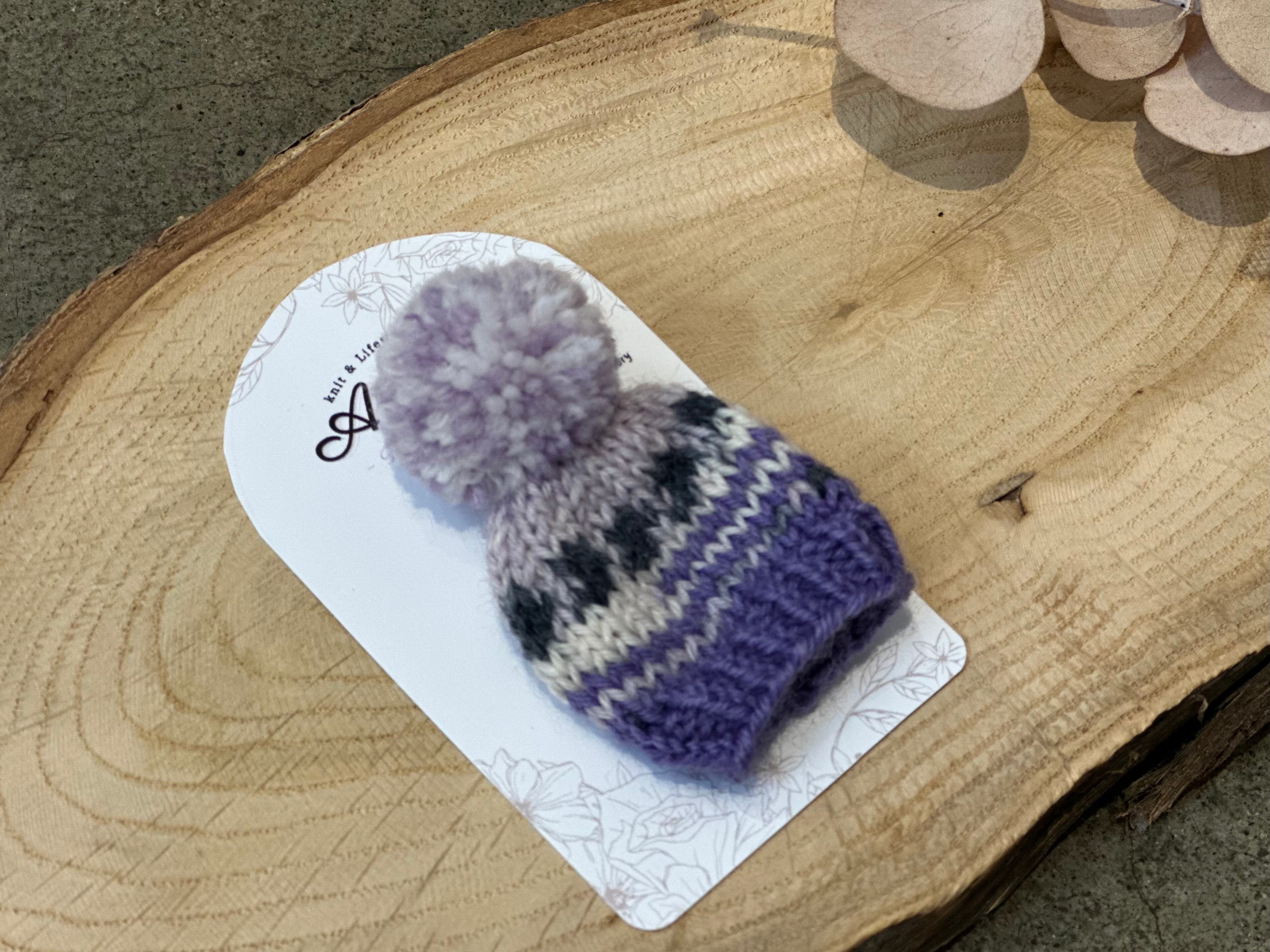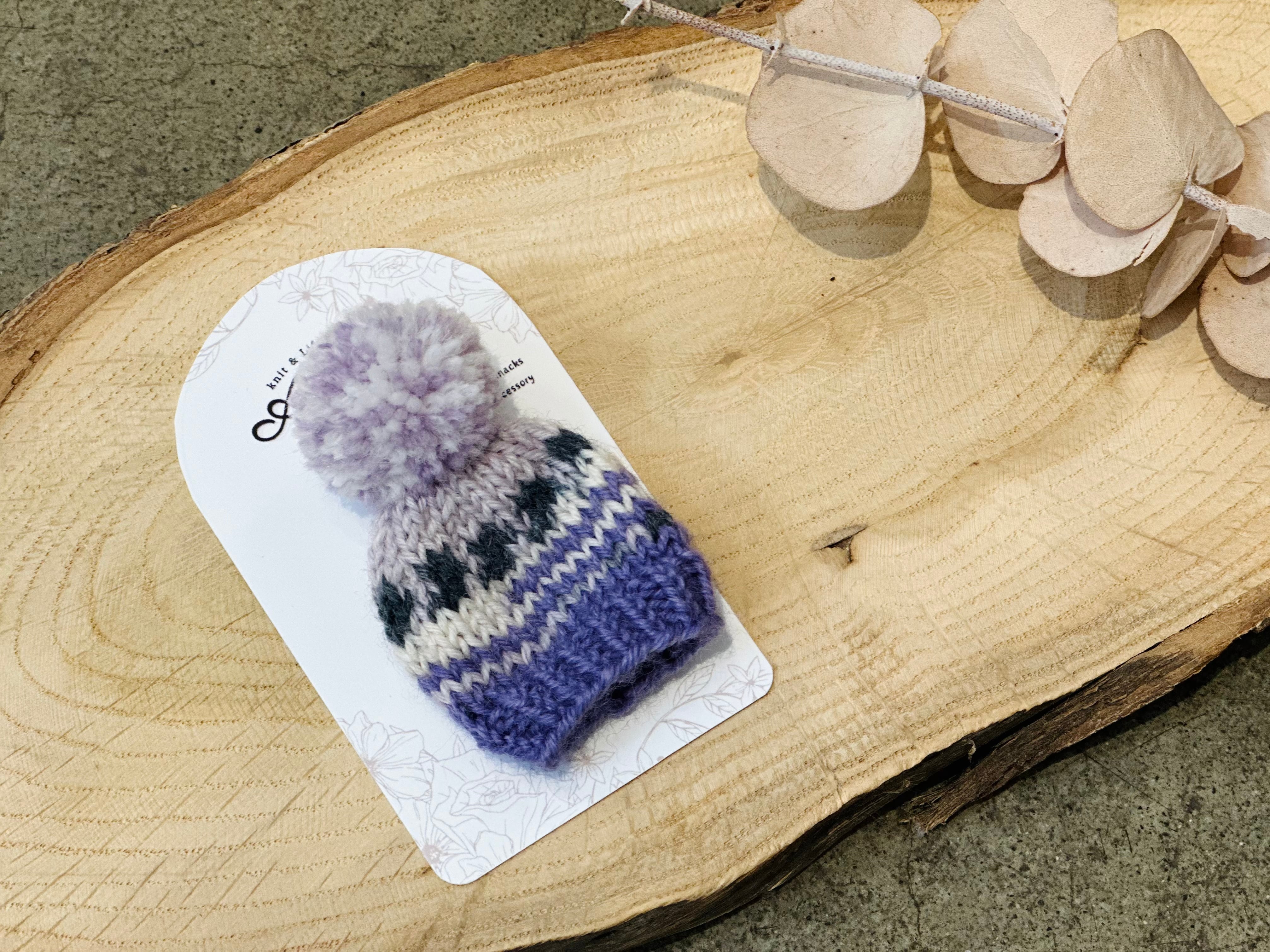 手編みの温もりを感じる、ポンポン帽子デザインのブローチ