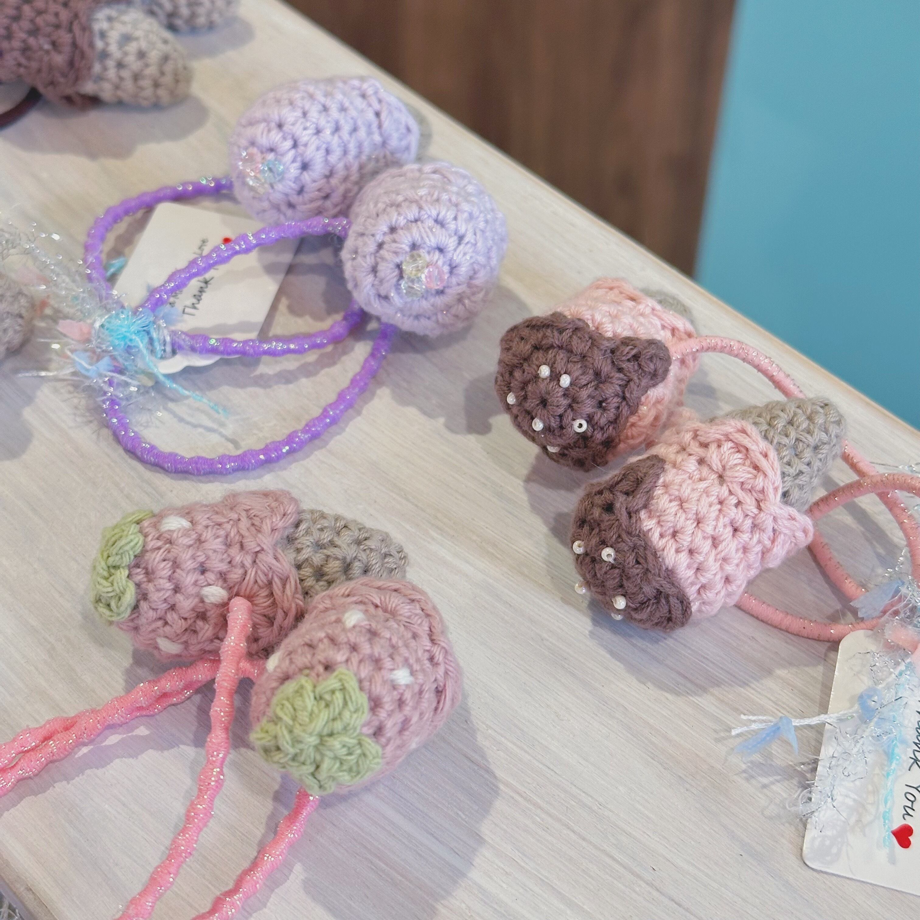 カラフルで可愛らしいアイスクリームデザインの手編みヘアゴムが登場です!