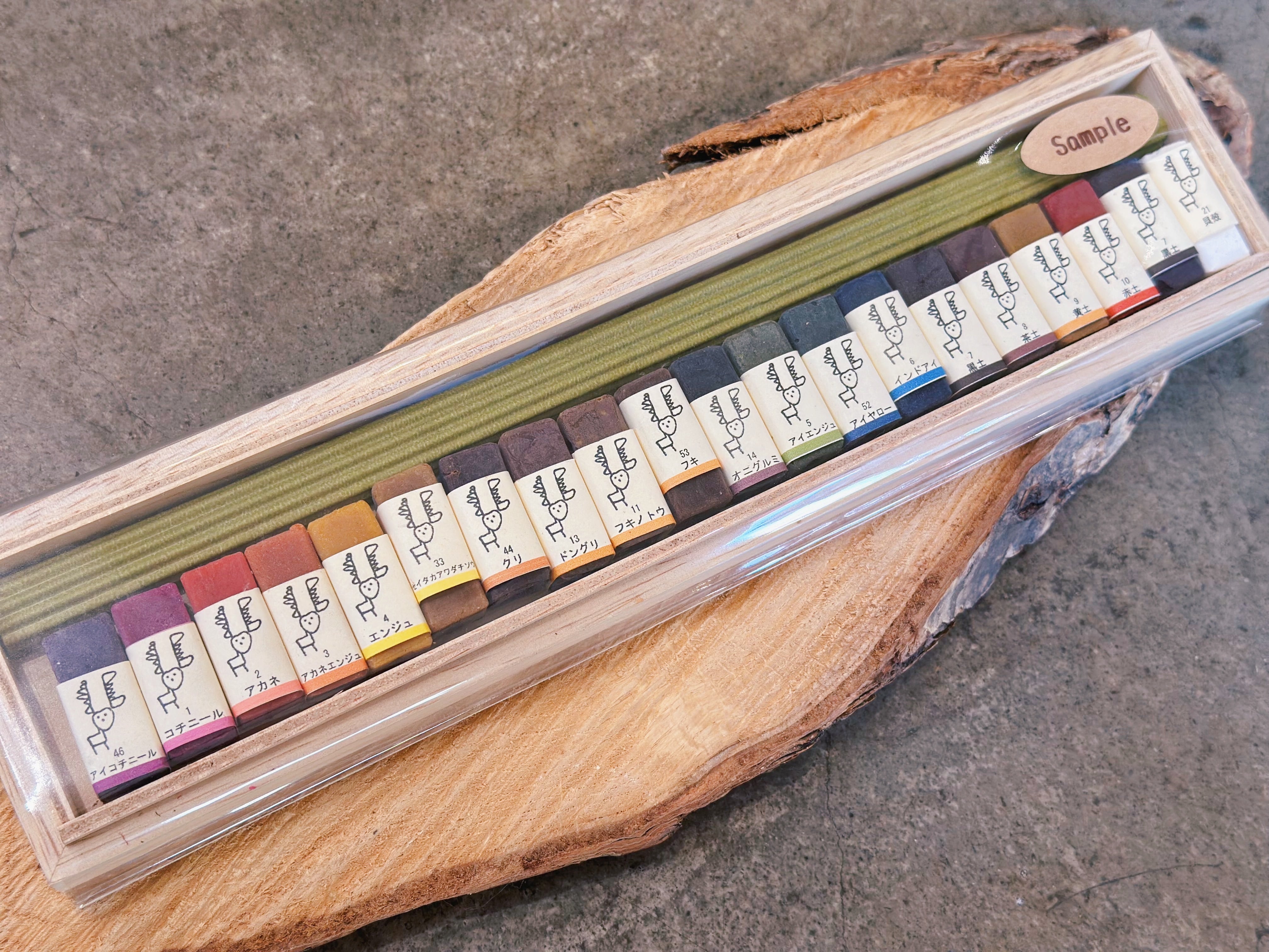 Tuna-Kaiのクレヨンは、草木染めのように、自然の木の葉や実、枝、草の葉、根、土、などから色をいただいて顔料を作り、蜜蝋と混ぜて、手作りのクレヨンを少しずつひとつひとつゆっくりと作っています。